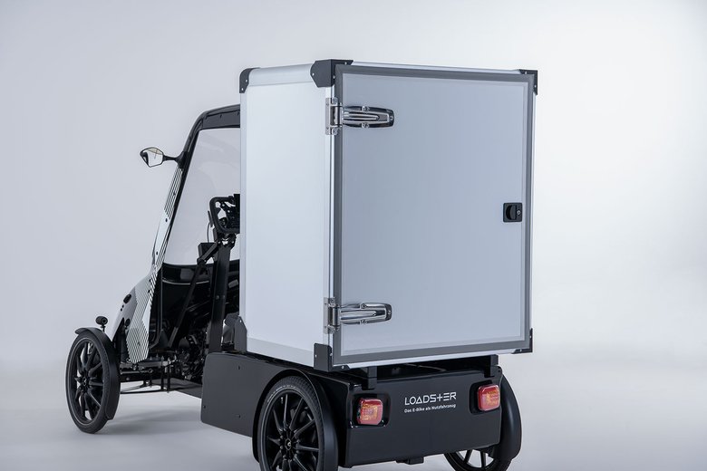 Vier Räder, Lenkrad, Sitz mit Rückenlehne, eine fest montierte Transportbox und eine komplette Fahrerkabine – der Loadster Delivery ist kaum noch als E-Bike zu erkennen. Der Loadster Box kombiniert die Vorteile eines kleinen Stadtautos mit denen eines E-Bikes. Standfest, agil und voll elektrifiziert, ist der Loadster genau das richtige Fahrzeug für lokale Lieferdienste, Handwerker oder Vor-Ort-Service Anbieter